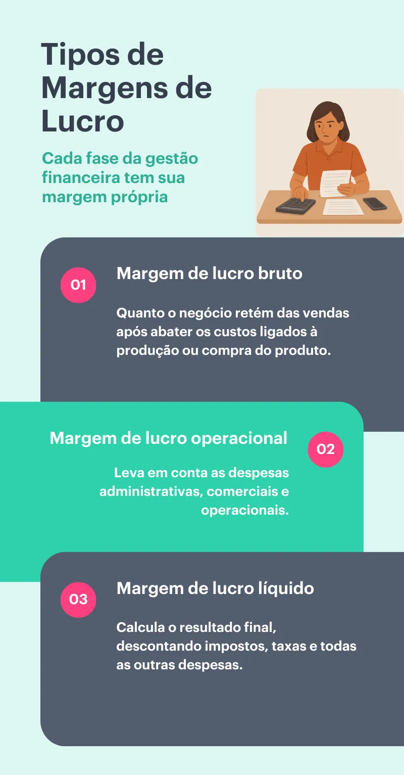 Cada fase da gestão financeira tem sua margem própria, e conhecê-las é chave para decisões bem informadas: